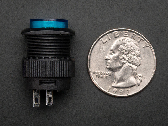 16mm Illuminated Pushbutton - Blue Latching On/Off Switch